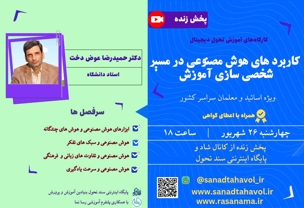 دریافت گواهی در این دوره چه آموزش داده می شود؟ در دوره «ابزارهای هوش مصنوعی در مدرسه و کلاس درس»…